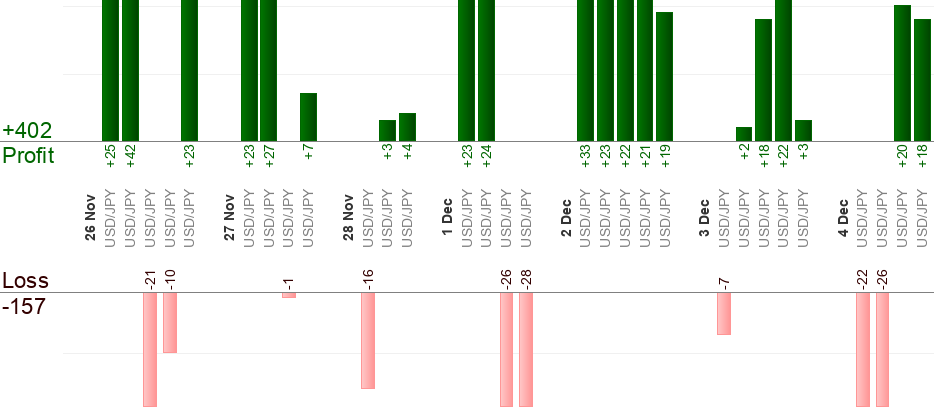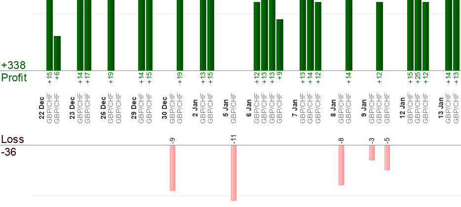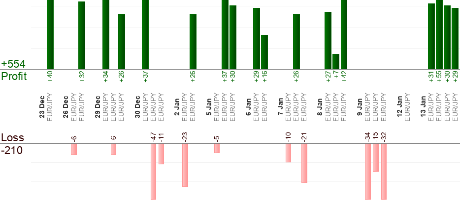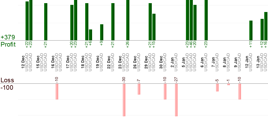 Eine anstehende Order soll beim Empfangen des Signals (zu der "Von"-Zeit) erteilt werden. Die "Bis"-Zeit ist fur erzwungenes Beenden bestimmt. Beliebige offene Handelsaktion gilt als erledigt, wenn die "Bis"-Zeit beinahe erreicht ist. Beliebige anstehende Order wird abgebrochen, wenn die "Bis"-Zeit beinahe erreicht ist. Trailing-Stop verwenden, um Gewinn zu maximieren.