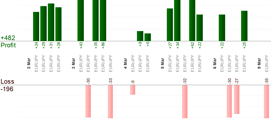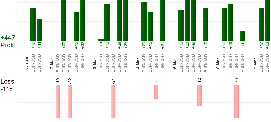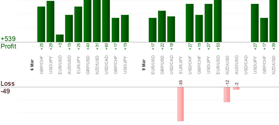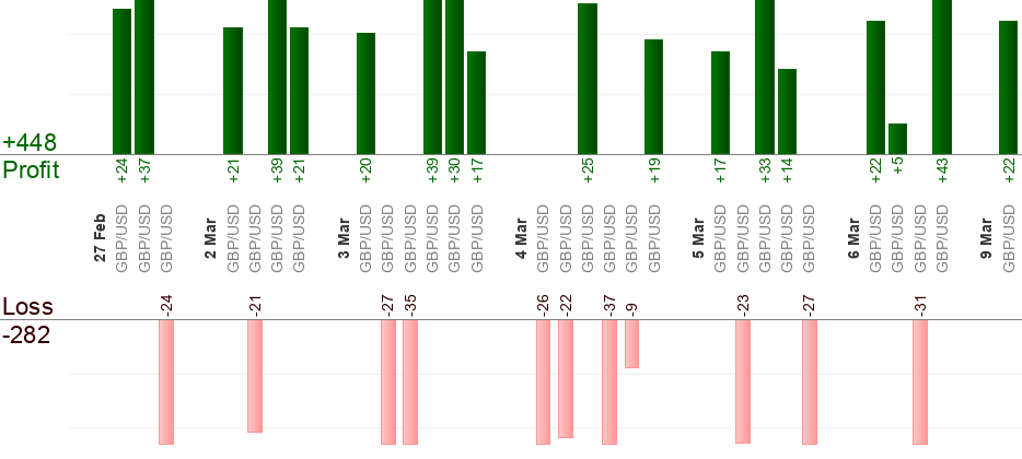 Please keep in mind that different brokers give different quotes at a specific point of time. The difference is usually about 5 pips and perhaps more. To overcome this issue Take-profit.com tries to average quotes from different brokers and provides "average" results. Nevertheless it's possible that your trade reaches entry/take-profit/stop-loss level when Take-profit.com trade doesn't and vice versa due to quote difference.