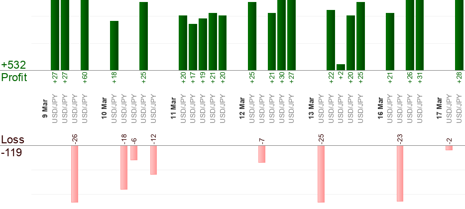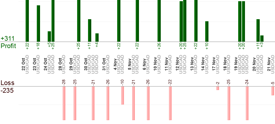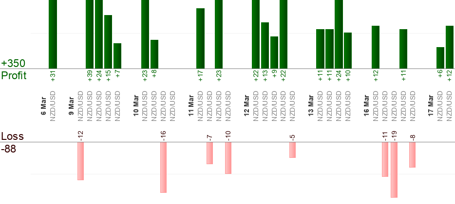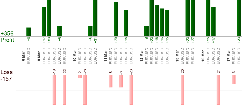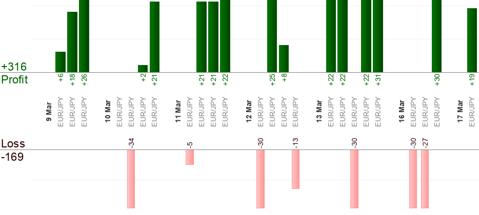 Bisogna mettere un ordine in attesa quando arriva il segnale (all’ora "dal"). L’ora "al" significa uscita forzata. Qualsiasi trade aperto viene "Eseguito" quando sta per arrivare l’ora "al". Qualsiasi ordine in attesa viene "Annullato" quando sta per arrivare l’ora "al". Usa il trailing stop per massimizzare i profitti.