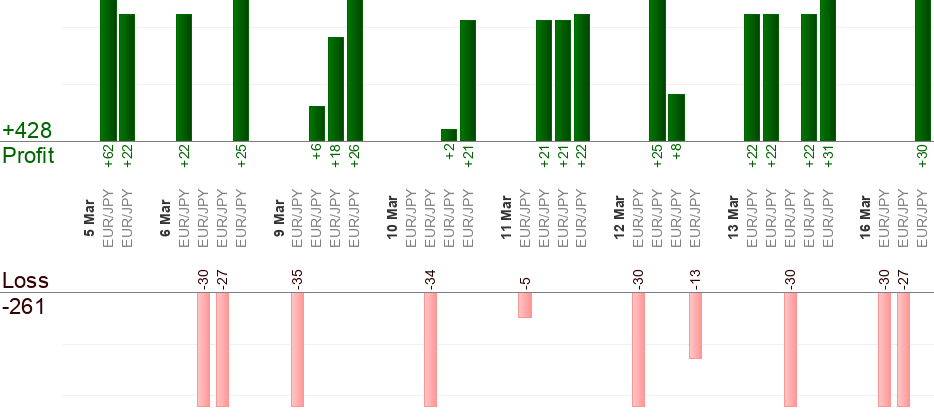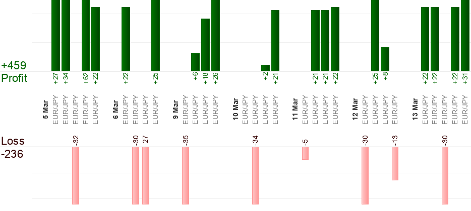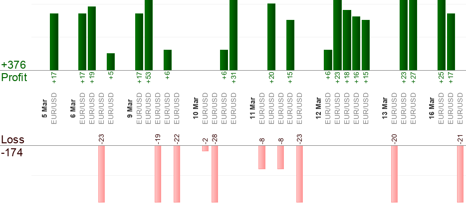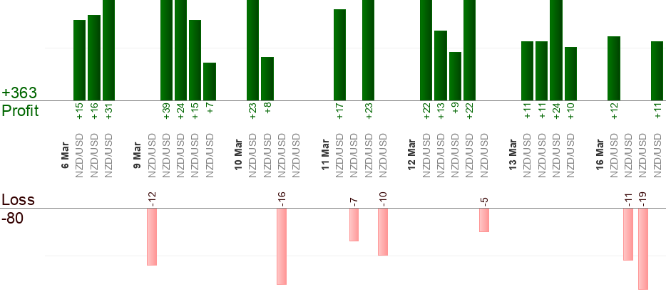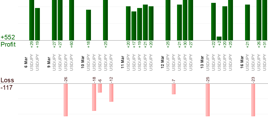 Bisogna mettere un ordine in attesa quando arriva il segnale (all’ora "dal"). L’ora "al" significa uscita forzata. Qualsiasi trade aperto viene "Eseguito" quando sta per arrivare l’ora "al". Qualsiasi ordine in attesa viene "Annullato" quando sta per arrivare l’ora "al". Usa il trailing stop per massimizzare i profitti.