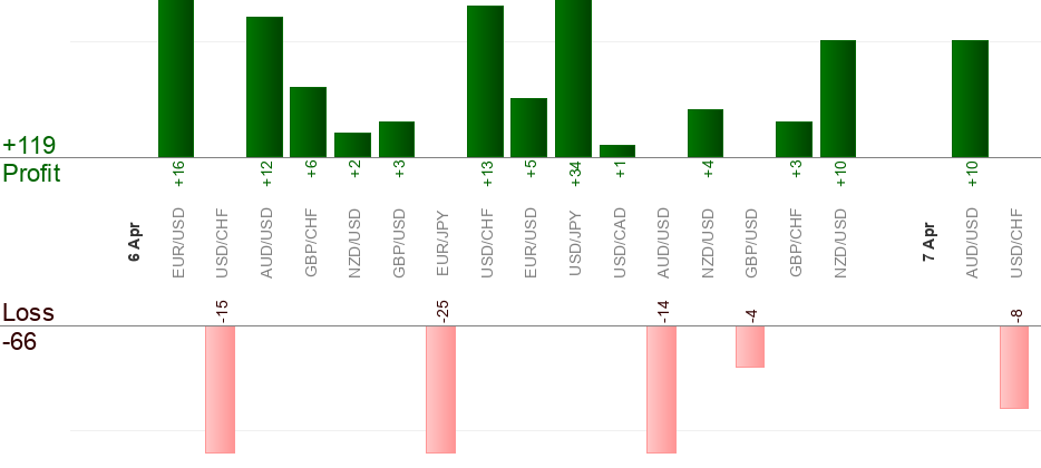 Por favor, tenha em mente que diferentes corretores fornecem cotações diferentes num ponto específico no tempo. A diferença é normalmente de cerca de 5 pips e talvez mais. Para ultrapassar este problema, Take-profit.com tenta fazer a média das cotações de diferentes corretores e fornece resultados "médios". No entanto, é possível que a sua negociação atinja o nível de entrada/take-profit/stop-loss quando a negociação Take-profit.com não atinge e vice-versa, devido à diferença de cotações.