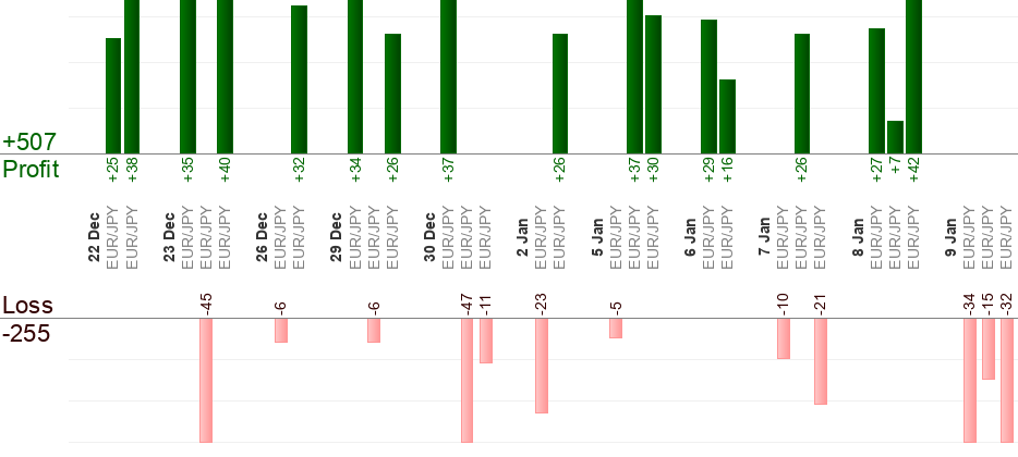 A ordem pendente deverá ser colocada assim que chega o sinal (no parâmetro "De"). O parâmetro "Até" foi desenhado para forçar a saída. Qualquer negociação aberta tem que ser preenchida até ao final do "Até". Quando o "Até" termina, a ordem será cancelada. Use trailing-stop para maximizar o lucro.
