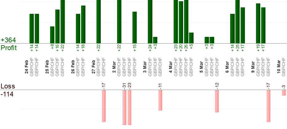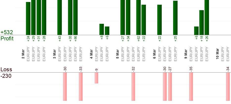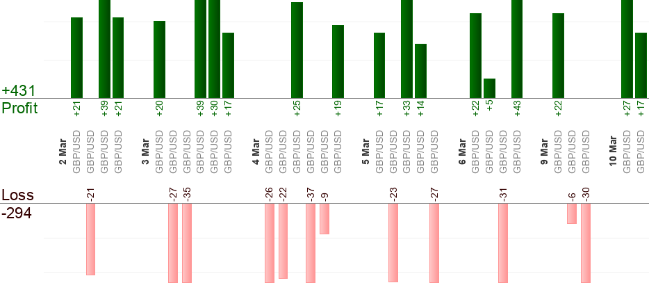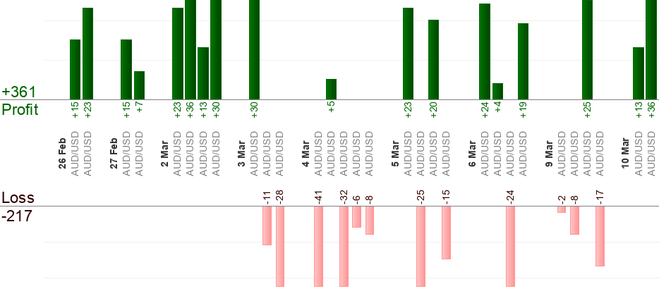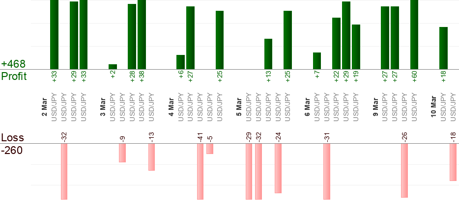 Следует установить отложенный ордер, когда появляется новый сигнал (во время "С"). Время "По" предназначено для принудительного закрытия. Любая открытая позиция становится "Исполнена", когда достигается время "По". Любой отложенный ордер становится "Отменен", когда достигается время "По". Используйте трейлинг-стоп для максимизации прибыли.